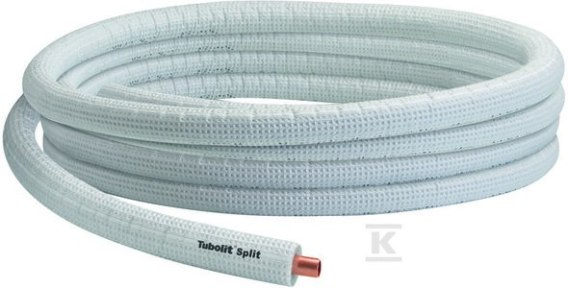 Rura miedziana Tubolit split SE 3/8" preizolowana o średnicy 9,52 mm i grubości ścianki 1 mm w zwoju 50 m pakowana w wieże SZ-101/E50 o numerze katalogowym SZ-101/E50 w kategorii Akcesoria do pomp ciepła, Pompy ciepła. Produkt wyprodukowany przez markę ARMACELL, seria SPLIT.