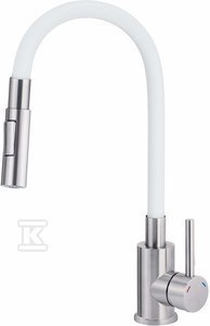 Bateria zlewozmywakowa LUNO stal-biała z elastyczną wylewką z słuchawką 2-funkcyjną o numerze katalogowym BOC_W740 w kategorii Baterie kuchenne>Baterie zlewozmywakowe stojące. Produkt wyprodukowany przez markę DEANTE, seria LUNO.