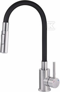 Bateria zlewozmywakowa LUNO stal-czarny z elastyczną wylewką z słuchawką 2-funkcyjną o numerze katalogowym BOC_B740 w kategorii Baterie kuchenne>Baterie zlewozmywakowe stojące. Produkt wyprodukowany przez markę DEANTE, seria LUNO.