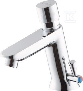 Bateria umywalkowa czasowa, chrom, stojąca z regulacją temperatury bez zamknięcia odpływu o numerze katalogowym BBH_029R w kategorii Baterie łazienkowe>Baterie umywalkowe stojące. Produkt wyprodukowany przez markę DEANTE, seria PRESS.