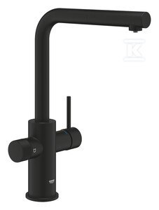 Bateria filtrująca Blue Pure Minta z wyciąganą wylewką w zakresie 360° wylewką "L", chrom o numerze katalogowym 30590KF0 w kategorii Baterie zlewozmywakowe stojące, Baterie kuchenne. Produkt wyprodukowany przez markę GROHE, seria GROHE BLUE.