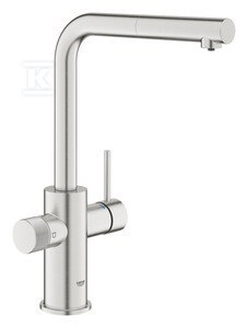 Bateria filtrująca Grohe Blue Pure Minta z wyciąganą, obracaną w zakresie 360° wylewką "L", stal nierdzewna o numerze katalogowym 30590DC0 w kategorii Baterie zlewozmywakowe stojące, Baterie kuchenne. Produkt wyprodukowany przez markę GROHE, seria GROHE BLUE.