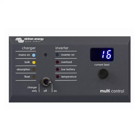 Zewnętrzny układ kontrolny i pulpit sterowania do urządzeń MultiPlus oraz Quattro. Łatwy w integracji z rodzina produktów GX. Umożliwia monitorowanie urządzenia. Posiada wbudowany limiter prądu przemiennego AC 230V