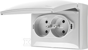 Gniazdo wtyczkowe natynkowe, podwójne kompaktowe z uziemieniem, klapka w kolorze pokrywy, IP44, 16 A, 250 V~, zaciski śrubowe, biały, AQUACLICK o numerze katalogowym ACGZ2/11 w kategorii Gniazda natynkowe, Gniazda instalacyjne. Produkt wyprodukowany przez markę KONTAKT-SIMON, seria AQUACLICK.