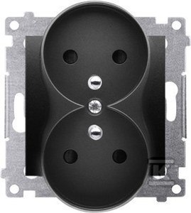 Gniazdo wtyczkowe podwójne z uziemieniem z przesłonami (moduł) 16A, 250V~, zaciski śrubowe, czarny mat Simon54 o numerze katalogowym DGZ2MZ.01/49 w kategorii Gniazda podtynkowe, Gniazda instalacyjne. Produkt wyprodukowany przez markę KONTAKT-SIMON, seria SIMON 54.