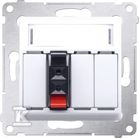 Gniazdo głośnikowe 1-krotne, do podłączenia 1 kolumny głośnikowej, biały Simon54 + Ramka 1-krotna uniwersalna do puszek karton-gips IP20 / IP44, biały Simon54 o numerze katalogowym DMS006 w kategorii Łączniki i gniazda instalacyjne>Gniazda głośnikowe. Produkt wyprodukowany przez markę KONTAKT-SIMON, seria SIMON 54.
