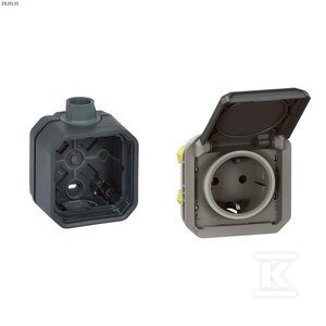 Gniazdo pojedyncze z uziemieniem Schuko 2P+Z, zaciski automatyczne, mechanizm 16 A-250V~ - antracyt, NOWE PLEXO 55 + Puszka natynkowa pojedyncza z przepustem kablowym PG20 - antracyt, NOWE PLEXO 55, 069871L / 069628L o numerze katalogowym  DLH135 w kategorii Gniazda instalacyjne>Gniazda natynkowe. Produkt wyprodukowany przez markę LEGRAND, seria NOWE PLEXO55.