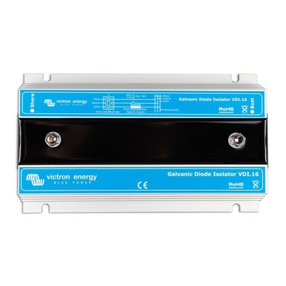 Izolator galwaniczny VDI-16 firmy Victron Energy to zaawansowane urządzenie, zaprojektowane specjalnie w celu ochrony metalowych elementów łodzi przed szkodliwym działaniem korozji elektrolitycznej. Korozja ta może występować, gdy łódź jest podłączona do zasilania brzegowego w porcie, a niskonapięciowe prądy stałe przepływają przez uziemienie. VDI-16 skutecznie blokuje te niepożądane prądy, zapewniając pełną ochronę kadłuba, śruby napędowej oraz innych metalowych części, które mają kontakt z wodą. Zastosowanie diod połączonych przeciwsobnie to kluczowy element działania tego urządzenia - dzięki nim prąd może przepływać w obu kierunkach, ale dopiero po przekroczeniu określonej wartości progowej, co zapobiega występowaniu niechcianych prądów o niskim napięciu.