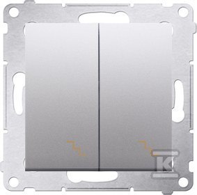 Łącznik schodowy podwójny 10 AX, srebrny mat Simon54 + Ramka 1-krotna uniwersalna IP20 / IP44, srebrny mat Simon54 o numerze katalogowym DMR806 w kategorii Łączniki schodowe>Łączniki podtynkowe schodowe. Produkt wyprodukowany przez markę KONTAKT-SIMON, seria SIMON 54.
