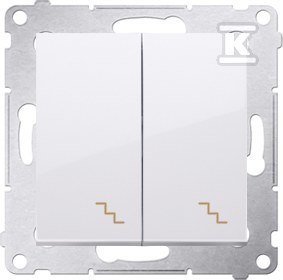 Łącznik schodowy podwójny z podświetleniem 10 AX, biały Simon54 + Ramka 1-krotna uniwersalna do puszek karton-gips IP20 / IP44, biały Simon54 o numerze katalogowym DMR863 w kategorii Łączniki schodowe>Łączniki podtynkowe schodowe. Produkt wyprodukowany przez markę KONTAKT-SIMON, seria SIMON 54.