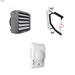 Nagrzewnica wodna LEO S2 w zestawie z konsolą montażową LEO S i regulatorem TS o numerze katalogowym DMT713 w kategorii Nagrzewnice, aparaty grzewczo-wentylacyjne>Nagrzewnice wodne. Produkt wyprodukowany przez markę FLOWAIR, seria LEO.
