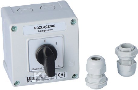 Łącznik Krzywkowy 16A, Rozłącznik 0-1 (1 - biegunowy), w obudowie OB11, o numerze katalogowym SK16-1.825\OB11 w kategorii Wyłączniki i rozłączniki obrotowe, Wyłączniki, rozłączniki. Produkt wyprodukowany przez markę SPAMEL.