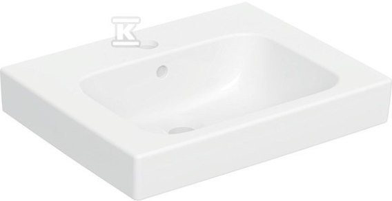 Umywalka Modo kompaktowa, B50 cm, H15.5 cm, T40 cm, z przelewem, z otworem na baterię o numerze katalogowym 502.831.00.1 w kategorii Umywalki ceramiczne, Ceramika. Produkt wyprodukowany przez markę GEBERIT, seria MODO.