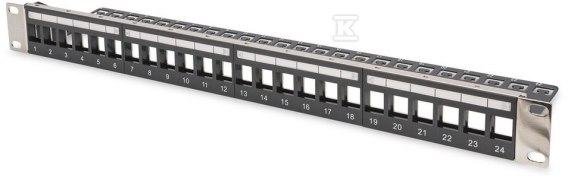 Panel krosowy modularny 19" 24x keystone,ekranowan y,1U,czarny,prowadnica kabli,wymienne pola opisowe o numerze katalogowym DN-91411-LF w kategorii Gniazda i akcesoria IT, Infrastruktura IT. Produkt wyprodukowany przez markę DIGITUS PROFESSIONAL.