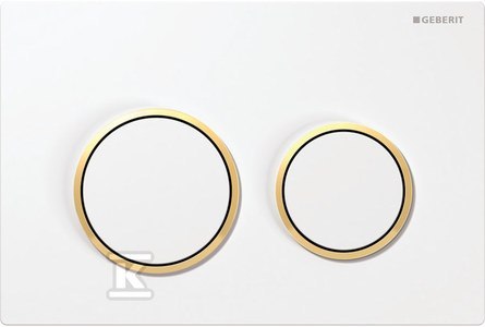 Przycisk spłukujący Omega20, przedni / górny, biały-złoty-biały o numerze katalogowym 115.085.KK.1 w kategorii Płytki uruchamiające, przyciski do stelaży podtynkowych, Stelaże podtynkowe. Produkt wyprodukowany przez markę GEBERIT, seria OMEGA 20.
