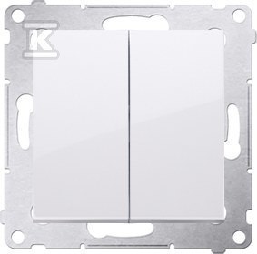 Przycisk podwójny zwierny bez piktogramu 10 AX, biały Simon54 o numerze katalogowym DP2.01/11 w kategorii Przyciski podtynkowe wielubiegunowe, Przyciski wielobiegunowe. Produkt wyprodukowany przez markę KONTAKT-SIMON, seria SIMON 54.