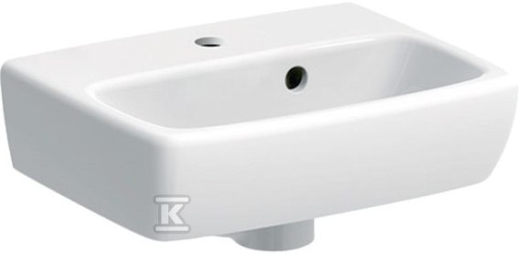 Umywalka kompaktowa Selnova Square B36 cm, H14.5 cm, T28 cm, z przelewem, z otworem na baterię o numerze katalogowym 500.316.01.7 w kategorii Umywalki ceramiczne, Ceramika. Produkt wyprodukowany przez markę GEBERIT, seria SELNOVA.