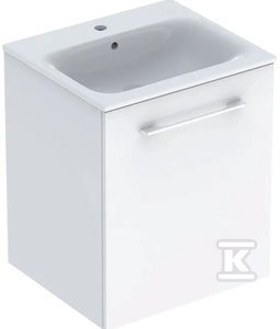 Zestaw szafki Selnova Square pod umywalkę, z jednymi drzwiami, B60 cm, H65.2 cm, T50.2 cm, biały, z umywalką meblową, cienki rant, z przelewem, z otworem na baterię o numerze katalogowym 501.252.00.1 w kategorii Szafki podumywalkowe, Meble łazienkowe. Produkt wyprodukowany przez markę GEBERIT, seria SELNOVA.