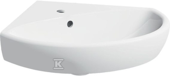 Umywalka kompaktowa Selnova narożna, B59 cm, H18 cm, T56 cm, z przelewem, z otworem na baterię o numerze katalogowym 501.050.00.5 w kategorii Umywalki ceramiczne, Ceramika. Produkt wyprodukowany przez markę GEBERIT, seria SELNOVA.