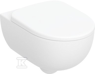 Zestaw wiszącej miski WC Selnova, lejowa, B36 cm, H38 cm, T53 cm, ukryte mocowania, Rimfree, z deską sedesową, mocowanie od góry o numerze katalogowym  501.991.00.1 w kategorii Miski WC wiszące, Ceramika. Produkt wyprodukowany przez markę GEBERIT, seria SELNOVA.