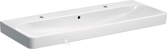 Umywalka Smyle Square B120 cm, H16.5 cm, T48 cm, z przelewem, z dwoma otworami na baterię o numerze katalogowym 500.253.01.1 w kategorii Umywalki ceramiczne, Ceramika. Produkt wyprodukowany przez markę GEBERIT, seria SMYLE.