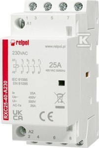Stycznik instalacyjny 4NO, 25A, 230 VAC RXC25-40-A230 o numerze katalogowym 2617022 w kategorii Styczniki>Styczniki instalacyjne. Produkt wyprodukowany przez markę RELPOL.