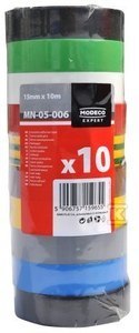15MM X 10M TAŚMA IZOLACYJNA KOLOROWA, ATEST 1 KV [EXPERT] o numerze katalogowym MN-05-006 w kategorii Taśmy tkaninowe, Materiały eksploatacyjne. Produkt wyprodukowany przez markę MODECO EXPERT.