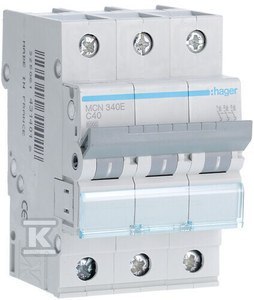 Wyłącznik nadmiarowo-prądowy, 6kA, charakterystyka C, 3-biegunowy, 40A o numerze katalogowym MCN340E w kategorii Wyłączniki nadprądowe 6kA, Wyłączniki nadprądowe. Produkt wyprodukowany przez markę HAGER.