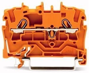 Złączka 2-przewodowa przelotowa 2,5 mm do zastosowań Ex e II opis z boku i na środku na szynę TS 35 x 15 i 35 x 7,5 Push-in CAGE CLAMP 2,50 mm pomarańczowa o numerze katalogowym 2002-1202 w kategorii Złączki i zaciski ochronne sprężynowe, Złączki listwowe sprężynowe. Produkt wyprodukowany przez markę WAGO, seria TOPJOB® S.