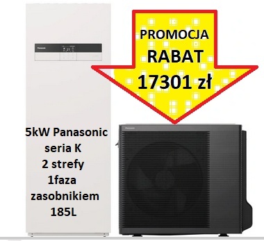 5kW Pompa ciepła Panasonic seria K 2 STREFY ALL IN ONE SPLIT z zasobnikiem 185L KIT-ADC05KE5B
