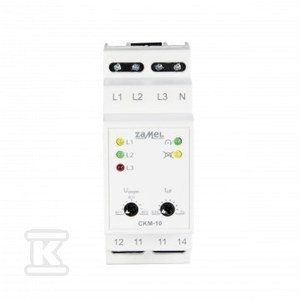 Cyfrowy czujnik kolejności faz i zaniku faz, 16A 2-mod. nastawa czasu i progu działania CKM-10 o numerze katalogowym EXT10000266 w kategorii Przekaźniki>Przekaźniki kontrolne. Produkt wyprodukowany przez markę ZAMEL.