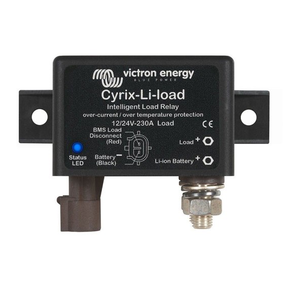 Wysokiej jakości stycznik Cyrix-Li-Load 12/24-230 sterowany przez mikroprocesor zapewniający automatyczne rozłączenie obciążeń od akumulatora LiFePo4. Może być sterowany za pomocą Ve Bus BMS lub smallBMS