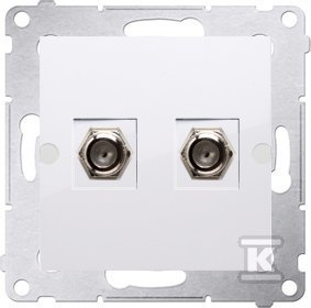 Gniazdo antenowe typu "F" podwójne (moduł). Do instalacji indywidualnych, biały, SIMON54 o numerze katalogowym  DASF2.01/11 w kategorii Gniazda teleinformacyjne, multimedialne, Łączniki i gniazda instalacyjne. Produkt wyprodukowany przez markę KONTAKT-SIMON, seria SIMON 54.