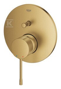 Bateria Essence jednouchwytowa do obsługi dwóch wyjść wody, brushed cool sunrise, montaż ścienny podtynkowy, głowica Ceramiczna 46 mm, metalowa rozeta, metalowa dźwignia o numerze katalogowym 24058GN1 w kategorii Baterie wannowe, Baterie łazienkowe. Produkt wyprodukowany przez markę GROHE, seria ESSENCE NEW.