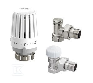 Głowica termostatyczna D biała, złącze M30x1.5, temp. 16 - 28°C oraz zawór termostatyczny kątowy Calypso exact DN 15, z bezstopniową nastawą wstępną od 1 do 8 oraz grzejnikowy zawór odcinający Raditec DN15 kątowy o numerze katalogowym  DMK864 w kategorii Głowice termostatyczne i zawory>Głowice termostatyczne tradycyjne. Produkt wyprodukowany przez markę IMI HEIMEIER, seria D.