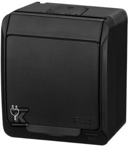 Gniazdo 1-krotne, natynkowe, IP44, czarny, HERMES o numerze katalogowym 0321-09 w kategorii Gniazda natynkowe, Gniazda instalacyjne. Produkt wyprodukowany przez markę ELEKTRO-PLAST NASIELSK, seria HERMES.