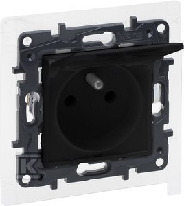 Gniazdo zasilające pojedyncze z uziemieniem IP44, zaciski śrubowe, bez przesłony styków- kolor czarny, NILOE STEP o numerze katalogowym 863535 w kategorii Gniazda podtynkowe, Gniazda instalacyjne. Produkt wyprodukowany przez markę LEGRAND, seria NSTEP.