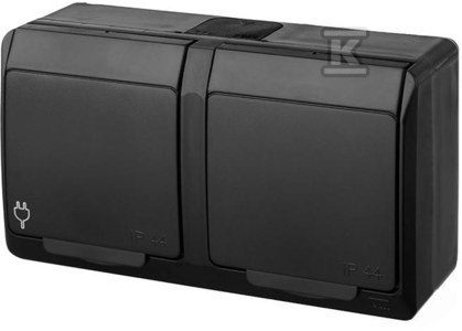Gniazdo 2-krotne, natynkowe, IP44, czarny, HERMES o numerze katalogowym 0322-09 w kategorii Gniazda natynkowe, Gniazda instalacyjne. Produkt wyprodukowany przez markę ELEKTRO-PLAST NASIELSK, seria HERMES.
