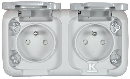 Gniazdo z uziemieniem i klapką podwójne poziome IP54, szary PALMIYE o numerze katalogowym  90555585 w kategorii Gniazda natynkowe, Gniazda instalacyjne. Produkt wyprodukowany przez markę PANASONIC, seria PALMIYE.