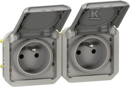 Gniazdo podwójne z uziemieniem 2x2P+Z, poziome, mechanizm 16A-250V~- szare, NOWE PLEXO 55 o numerze katalogowym 069562L w kategorii Gniazda podtynkowe>Gniazda natynkowe. Produkt wyprodukowany przez markę LEGRAND, seria NOWE PLEXO55.