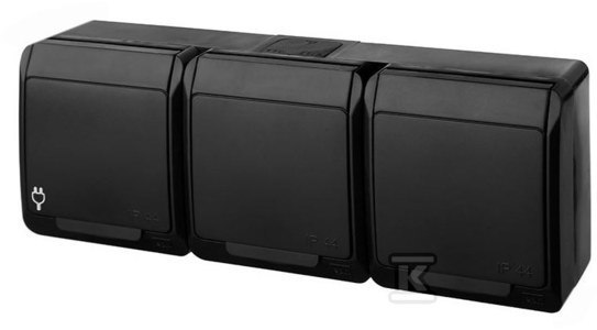 Gniazdo 3-krotne, natynkowe, IP44, czarny, HERMES o numerze katalogowym 0323-09 w kategorii Gniazda natynkowe, Gniazda instalacyjne. Produkt wyprodukowany przez markę ELEKTRO-PLAST NASIELSK, seria HERMES.