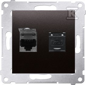 Gniazdo komputerowe podwójne RJ45 kategoria 6 z przesłoną przeciwkurzową, antracyt Simon54 + Ramka 1-krotna uniwersalna IP20 / IP44, antracyt Simon54 o numerze katalogowym DMR938 w kategorii Łączniki i gniazda instalacyjne>Gniazda teleinformacyjne, multimedialne. Produkt wyprodukowany przez markę KONTAKT-SIMON, seria SIMON 54.