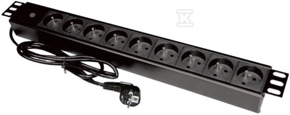 Listwa zasilająca 19" gniazdo 9 x CEE 7/5 wtyk CEE 7/7 z diodą LED o numerze katalogowym PZ09 w kategorii Szafy i wyposażenie IT, Infrastruktura IT. Produkt wyprodukowany przez markę A-LAN.