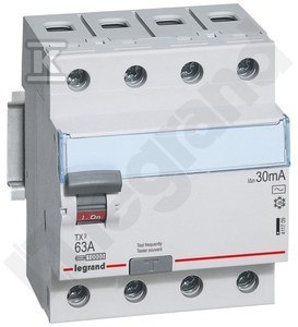 Wyłącznik różnicowoprądowy P304 4P 63A 30MA TYP AC TX3 o numerze katalogowym 411709 w kategorii Wyłączniki różnicowoprądowe typ AC, Wyłączniki różnicowoprądowe. Produkt wyprodukowany przez markę LEGRAND, seria P30TX.