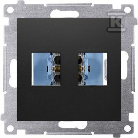 Pokrywa gniazd teleinformatycznych na Keystone płaska podwójna (moduł), czarny mat Simon54 o numerze katalogowym DKP2.01/49 w kategorii Plakietki, Ramki, klawisze, plakietki. Produkt wyprodukowany przez markę KONTAKT-SIMON, seria SIMON 54.