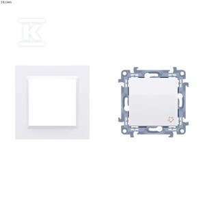 Przycisk "dzwonek" (moduł) 10 AX, 250 V~, zaciski szybkozłącza, biały Simon10 + Ramka 1-krotna - uniwersalna poziom i pion, biały Simon10 o numerze katalogowym  DLG965 w kategorii Przyciski dzwonkowe>Przyciski podtynkowe dzwonki. Produkt wyprodukowany przez markę KONTAKT-SIMON, seria SIMON 10.