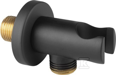 Przyłącze kątowe do węża natryskowego z uchwytem 1/2",czarny o numerze katalogowym PKN14BL w kategorii Zestawy prysznicowe>Węże prysznicowe i przyłącza. Produkt wyprodukowany przez markę FERRO.