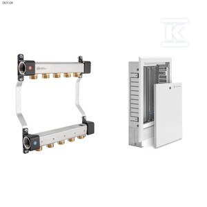 Rozdzielacz InoxFlow z nyplami do śrubunków (seria RNN) - 4 obwody w zestawie z szafka podtynkowa SWPSE - 4 (560-660x350x110-160) o numerze katalogowym DLV120 w kategorii System KAN-therm>Rozdzielacze KAN-therm. Produkt wyprodukowany przez markę KAN-therm, seria SZAFKI I ROZDZIELACZE.