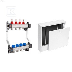 Rozdzielacz InoxFlow z zaworami do siłowników i przepływomierzami (seria UFST) - 4 obwody w zestawie z szafka natynkowa SWNE - 4 (585x350x110) o numerze katalogowym DLV111 w kategorii System KAN-therm>Rozdzielacze KAN-therm. Produkt wyprodukowany przez markę KAN-therm, seria SZAFKI I ROZDZIELACZE.