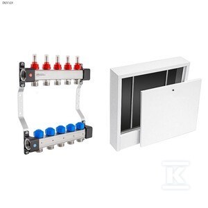 Rozdzielacz InoxFlow z zaworami do siłowników i przepływomierzami (seria UFS) - 8 obwodów w zestawie z szafka natynkowa SWNE - 8 (585x550x110) o numerze katalogowym DLV123 w kategorii System KAN-therm>Rozdzielacze KAN-therm. Produkt wyprodukowany przez markę KAN-therm, seria SZAFKI I ROZDZIELACZE.